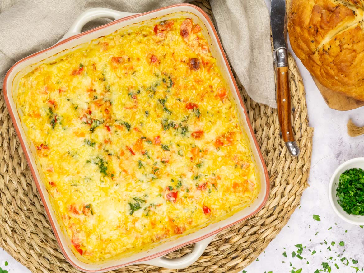 Voor ons is dit vispannetje echt zo’n gerecht waar we naar uitkijken. Vooral op vrijdagavond zetten we het graag op tafel, met een glas witte wijn erbij en een stuk knapperig stokbrood om de saus mee op te dippen. Dat maakt het net even extra gezellig. Maar ook doordeweeks is dit een fijne optie. Je hoeft er namelijk niet lang voor in de keuken te staan. Even de groenten aanbakken, een romige saus maken en daarna doet de oven het werk.