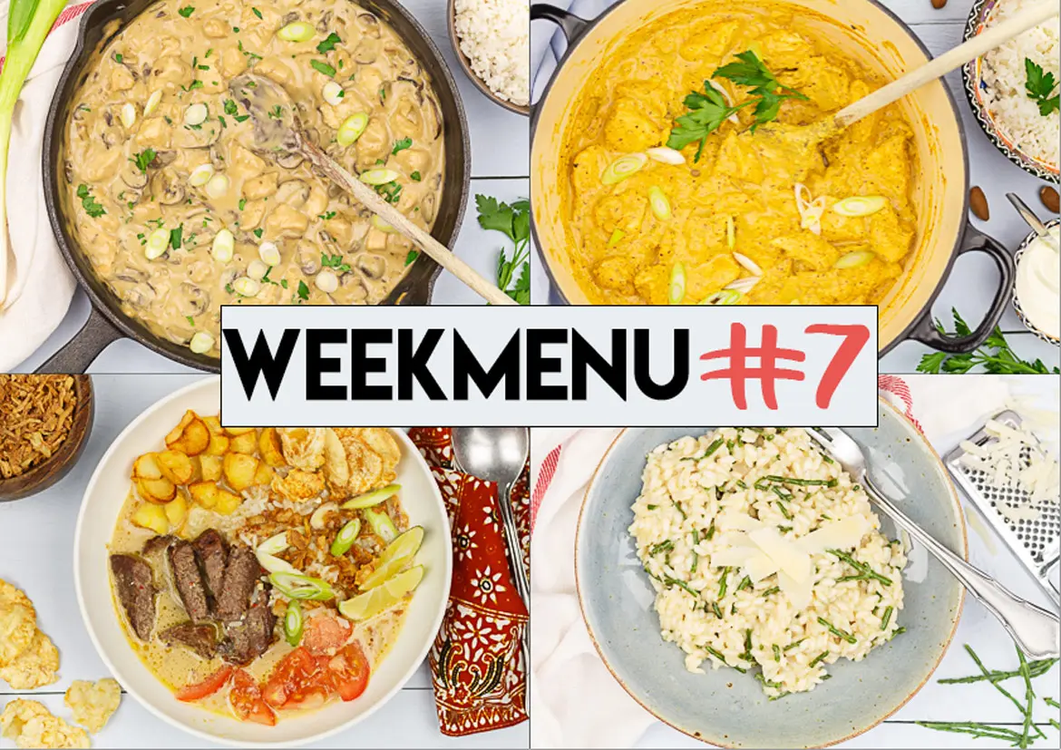Zoek je nog inspiratie voor deze week? Wij verzamelden zeven gerechten die lekker afwisselend zijn. Van een snelle kip Stroganoff tot soto betawi (Indische maaltijdsoep met rundvlees) en een royaal broodje kipschnitzel met coleslaw.